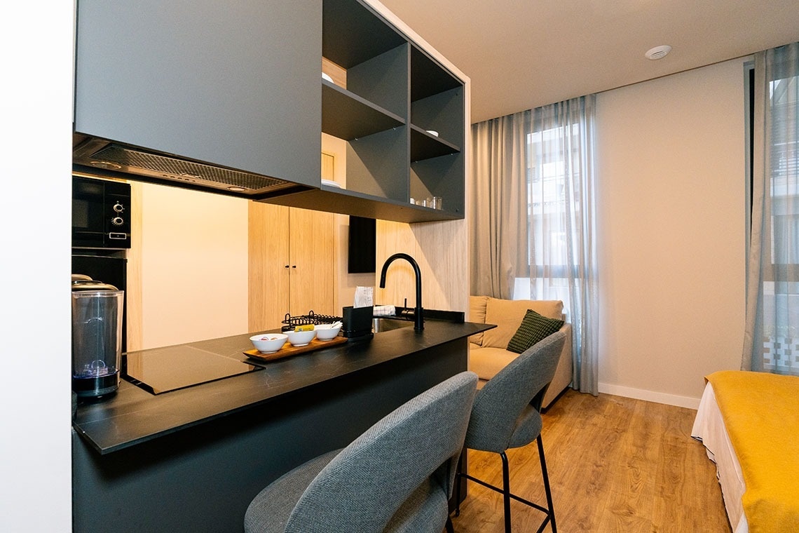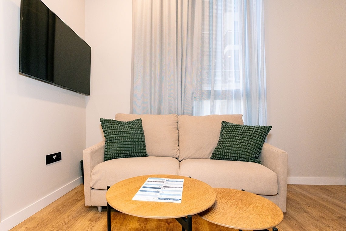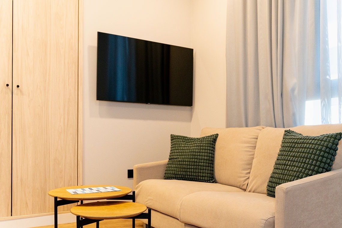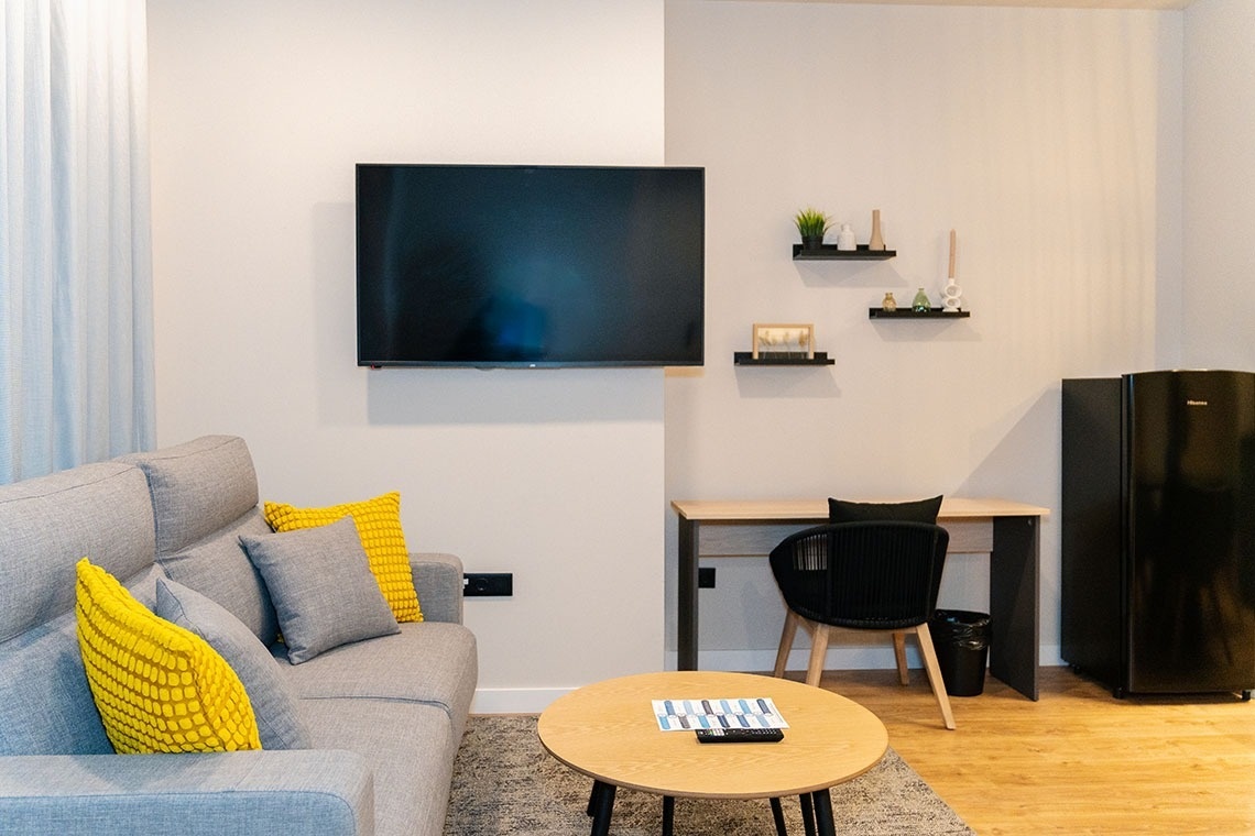El estudio posee un sofá cama.