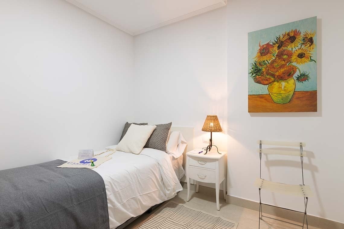 Apartamento amplio y luminoso, con decoración minimalista y acogedora. Se encuentra en el barrio de Alboraya de Valencia, a 900m de la playa de la Patacona es decir 3 minutos andando y a la misma distancia de la playa de Alboraya. El apartamento cuenta con aire acondicionado, 2 dormitorios independientes y baño, sala de estar y comedor, una excelente terraza con vistas a la playa, cocina totalmente equipada y 1 baño. Hay TV de pantalla plana y Wifi incluido.